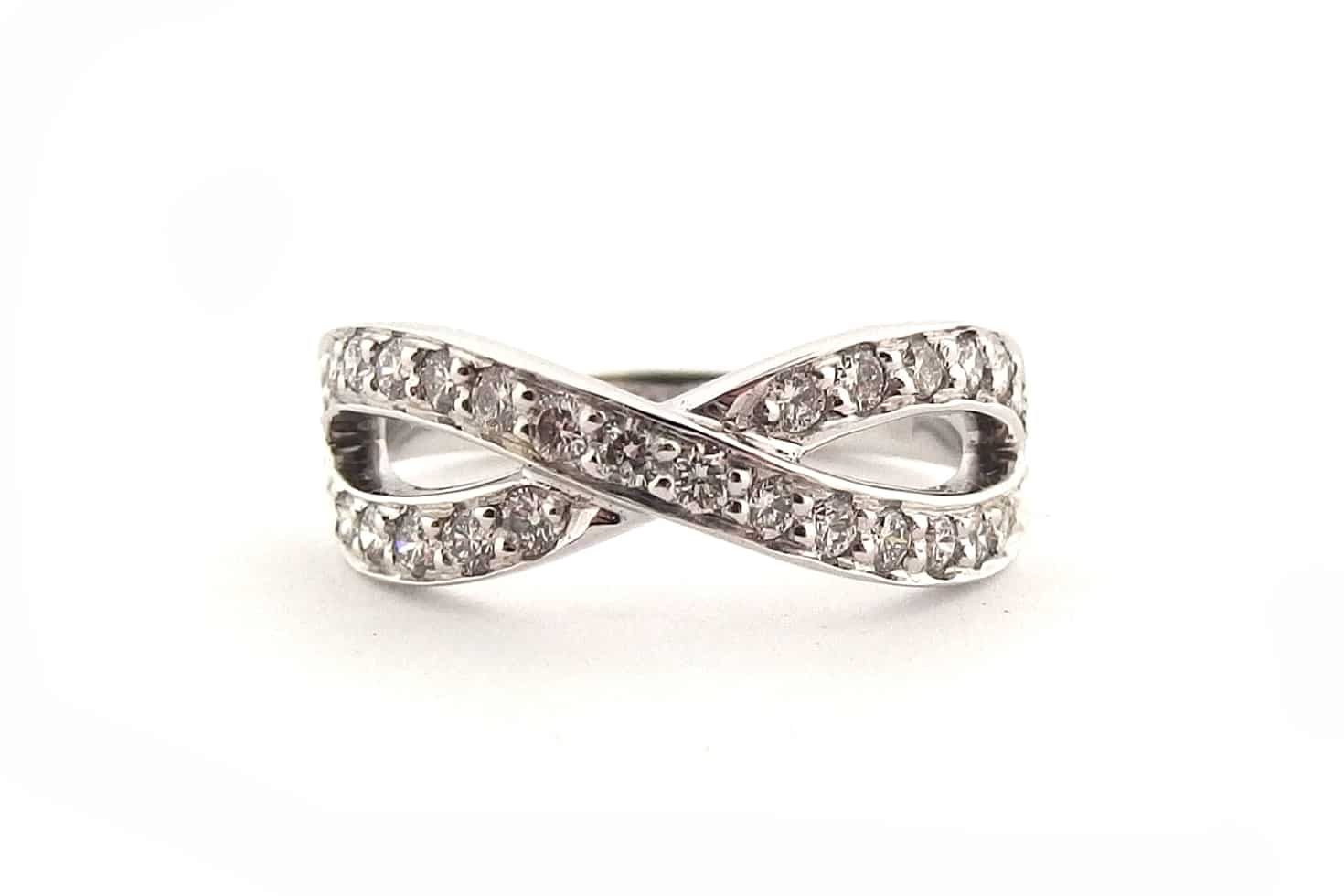 18ct white gold figure eight eternity symbol diamond set ring.