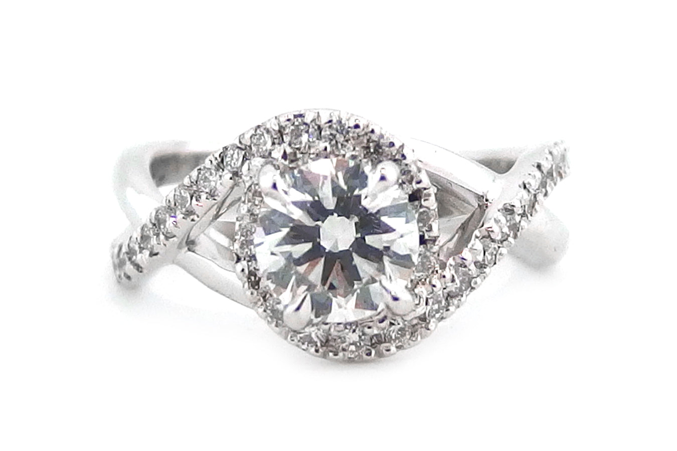 One natural brilliant cut diamond weighing 0.80ct (G colour SI1 clarity) set in a handmade ring with 0.01ct matching brilliant cut diamonds novo set into the band.