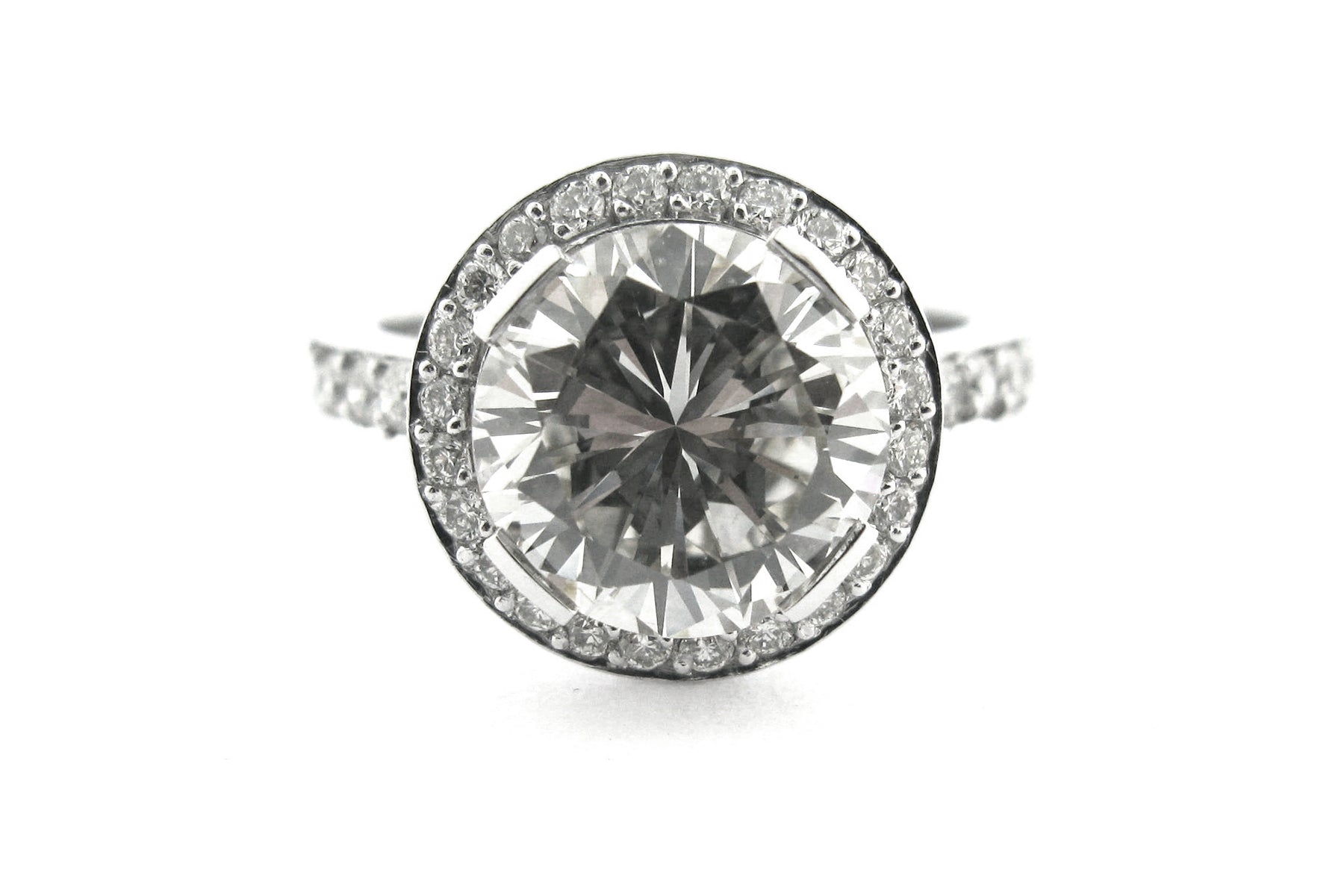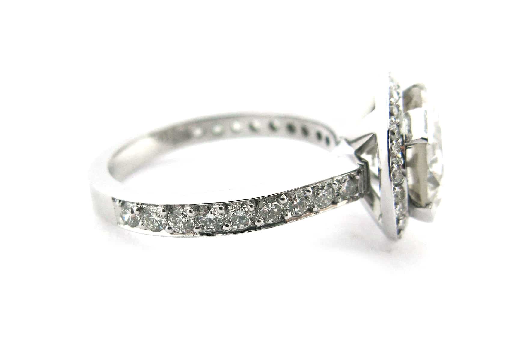 One natural brilliant cut diamond weighing 1.70ct (G colour SI1 clarity) set in a handmade 18ct white gold ring with a halo of 0.01ct brilliant cut diamonds (bead set)   Please note that the gemstones and diamonds used in this ring can be adapted to suit most budgets and specifications. Please contact us for further information.