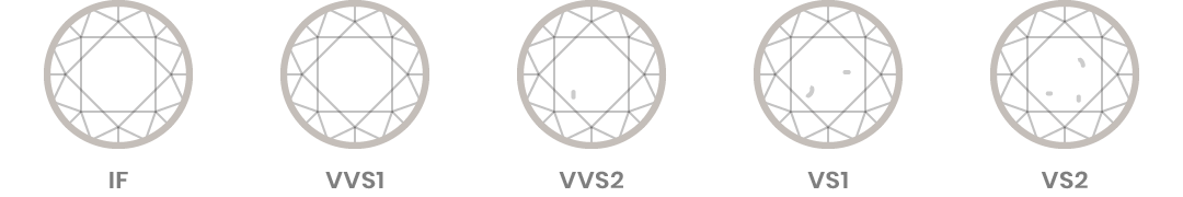 IF / Internally Flawless: The diamond has no inclusions when examined by an experienced grader using 10x magnification, but will have some minor blemishes.