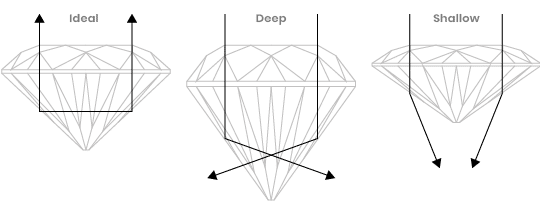 The most important of the 4 C’s is the Cut as this is what determines the sparkle, or brilliance, of the diamond. The cut of a diamond determines its shape, angles and proportions. The angles and proportions of a diamond are what allow the light to enter the stone and refract back out, giving its sparkle and brilliance.