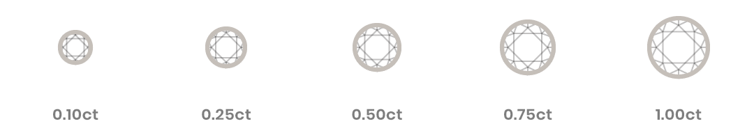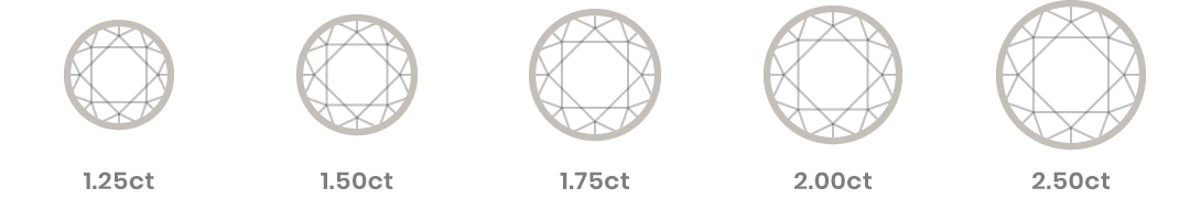 Diamonds are measured by weight in carats and one carat (abbreviated to ct) is equal to 0.2 grams. Larger diamonds are more valuable, due to their rare occurrence in nature. Max diamonds offers diamonds of almost any carat weight. The brilliance of a diamond depends on all 4C.s, so size alone is not the only indicator of value.